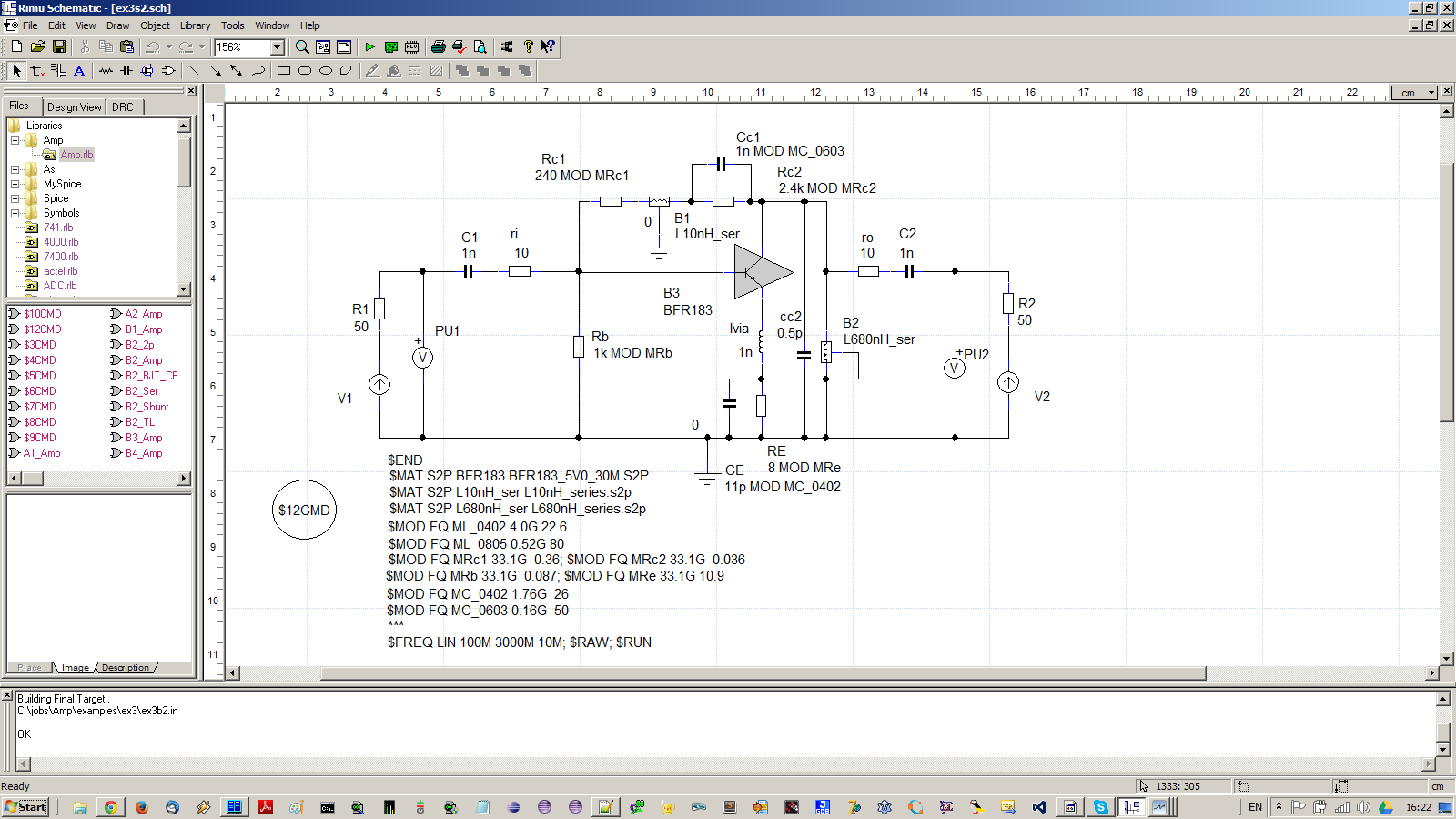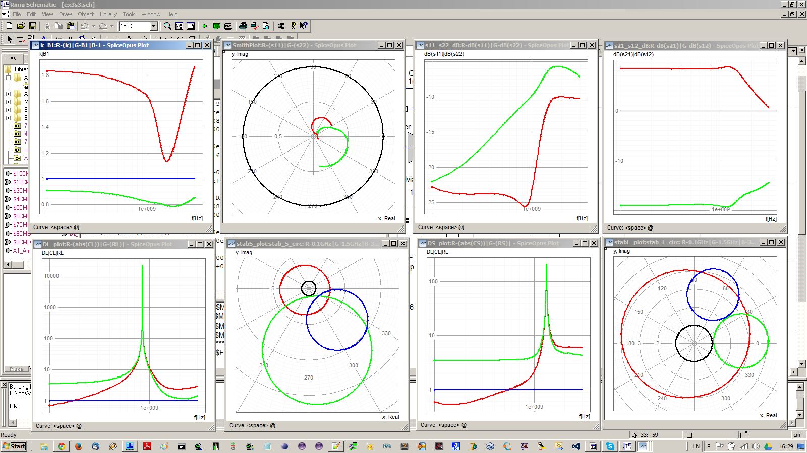 RF AMP is RF networks analysis program. Gain stage in RIMU schematics editor Gain stage stability analysis with plots created by OPUS-Spice Nutmeg script